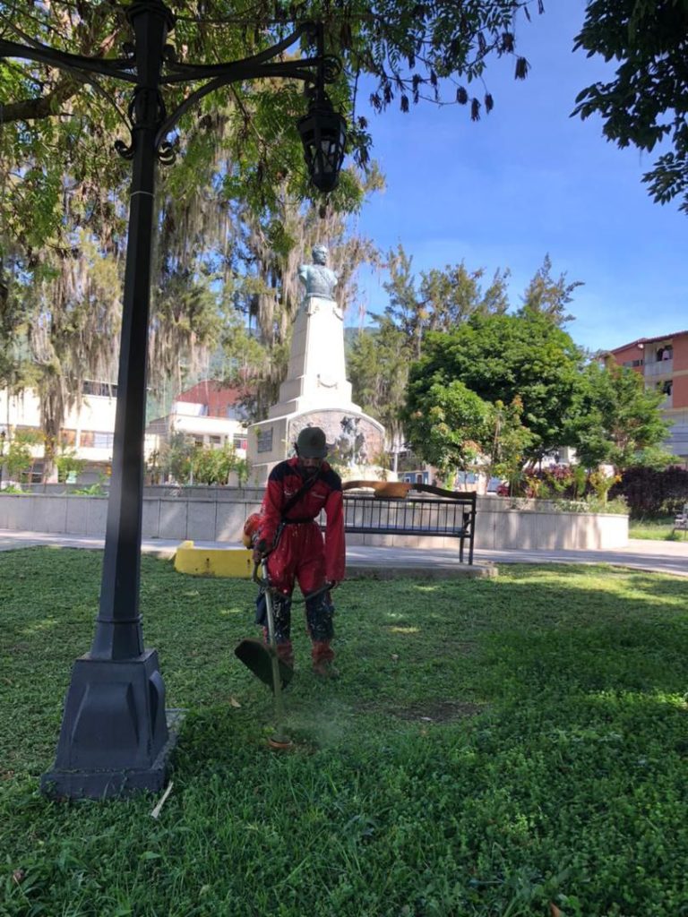 Las labores realizadas en la histórica plaza incluyeron desmalezamiento profundo, recolección de desechos sólidos y limpieza general, devolviendo a este emblemático espacio su esplendor y funcionalidad para el disfrute de la comunidad merideña.