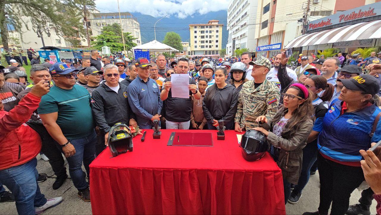 Durante un acto realizado en la plaza Glorias Patrias de la ciudad de Mérida, municipio Libertador, el mandatario regional, Arnaldo Sánchez, presentó el Decreto n.° 147 relacionado con la prevención y protección del gremio motorizado.